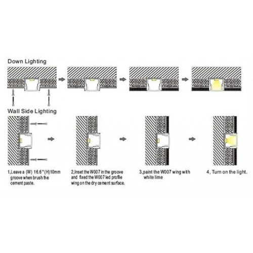 This type of profile is used in design solutions when creating a special interior. The built-in aluminum profile for LED strip makes it possible to connect chipboards and drywall, in the joint area of which the LED strip is mounted. Also a distinctive feature is the edge, which closes the irregularities in the area of the formed cracks.