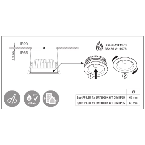 LED Ugunsizturīgs iebūvējams gaismeklis