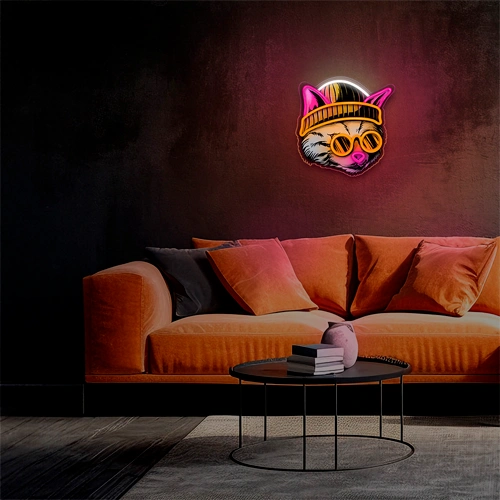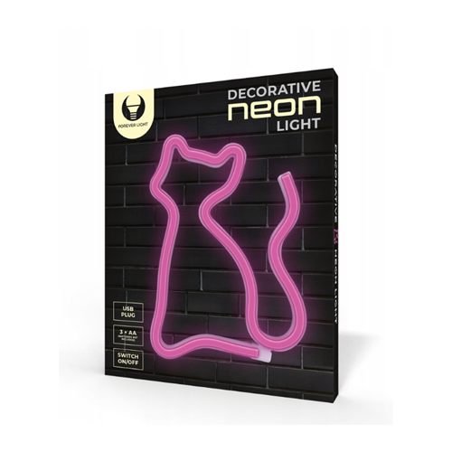 LED Neona gaismas izkārtne - KAĶIS ROZĀ
