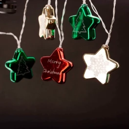 LED Ziemassvētku virtene - Zvaigznes, 1.65m, 10 LED, silti balts, IP20, uz baterijām