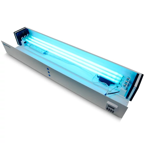 Укомплектован высококачественными безозоновыми бактерицидными лампами низкого давления с пиком ультрафиолетового излучения 254 нм (УФ-С диапазон). Данная длина волн излучения идеально соответствует пику максимальной бактерицидной эффективности, т.е. наилучшему поглощению ультрафиолета молекулами ДНК микроорганизмов, в результате чего микробы теряют способность размножаться и погибают.